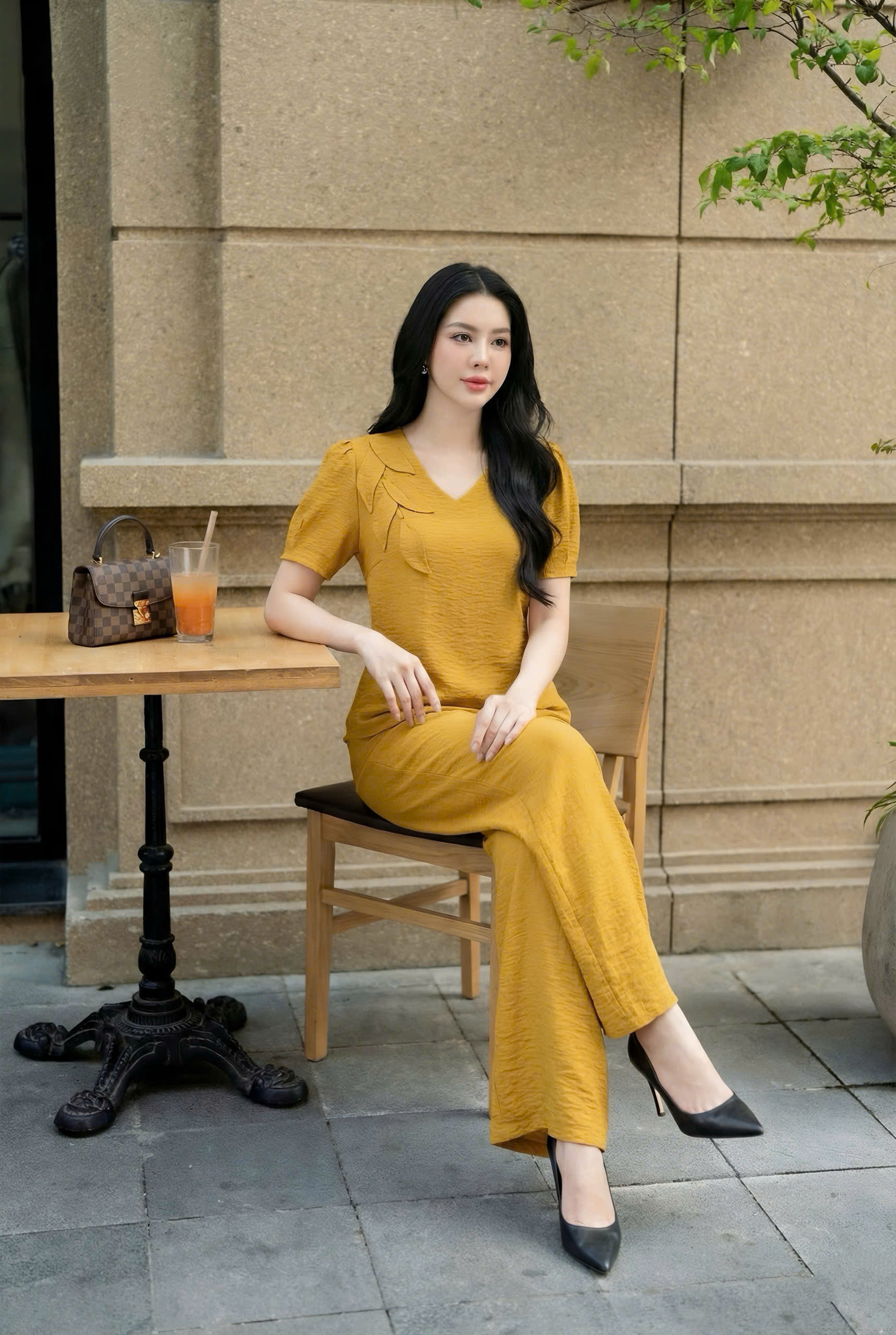 ÁO CỔ TIM ĐÍNH LÁ VAI