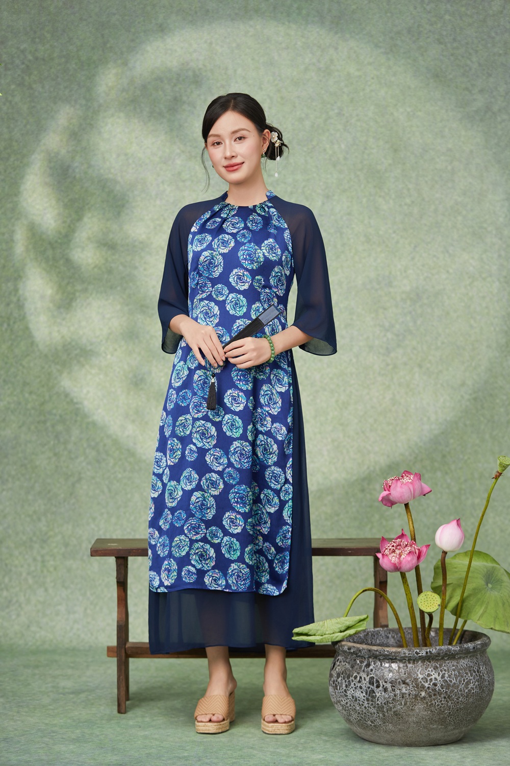 Kiểu dáng: Áo dài suông, cổ yếm hiện đại kết hợp tay lửng mềm mại