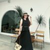 Chân váy đen dáng dài thanh lịch, thiết kế xòe nhẹ tạo độ bay mềm mại khi di chuyển, mang đến vẻ ngoài nữ tính và sang trọng 🖤