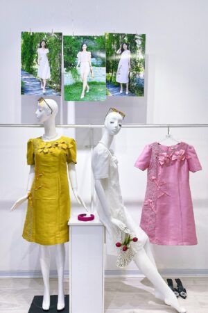 Phần cổ tim nhẹ kết hợp tay ngắn thanh lịch, mang đến cảm giác trang nhã nhưng vẫn hiện đại. Đầm được may trên nền vải carolan cao cấp, bề mặt mịn, đứng phom, ít nhăn và có độ co giãn nhẹ giúp thoải mái khi di chuyển.