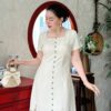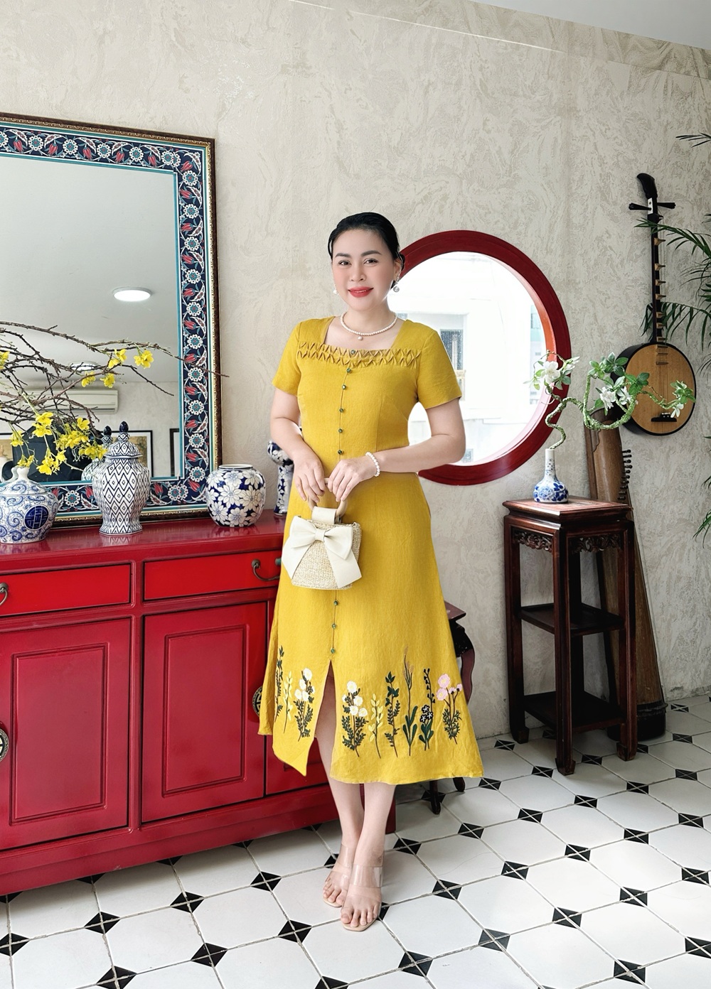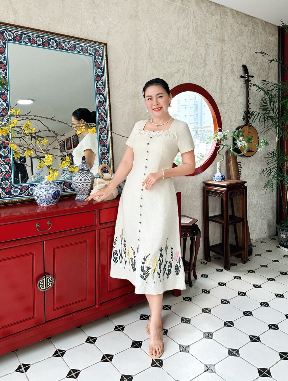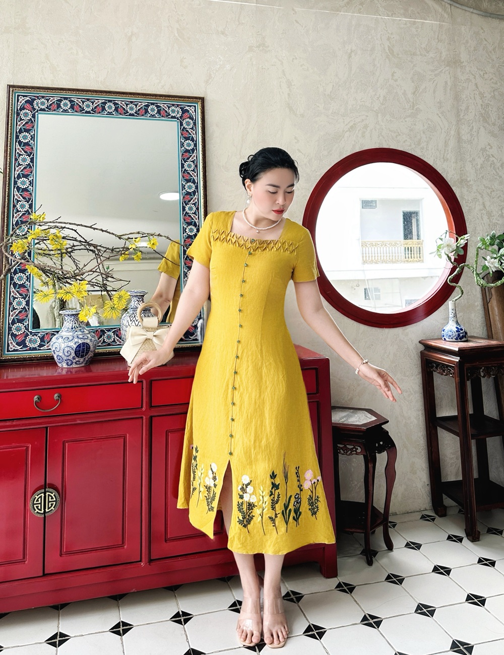 ĐẦM LINEN CỔ VUÔNG THÊU HOA
