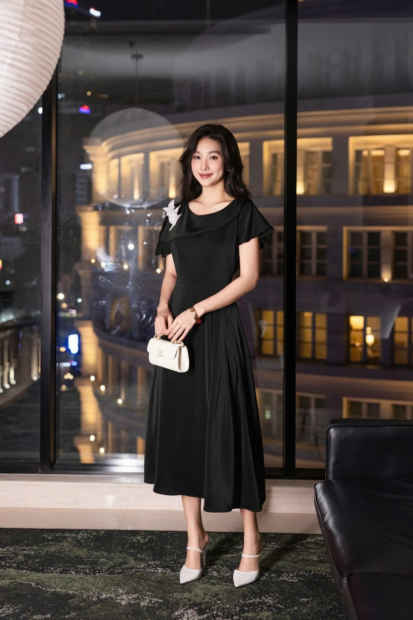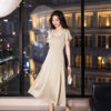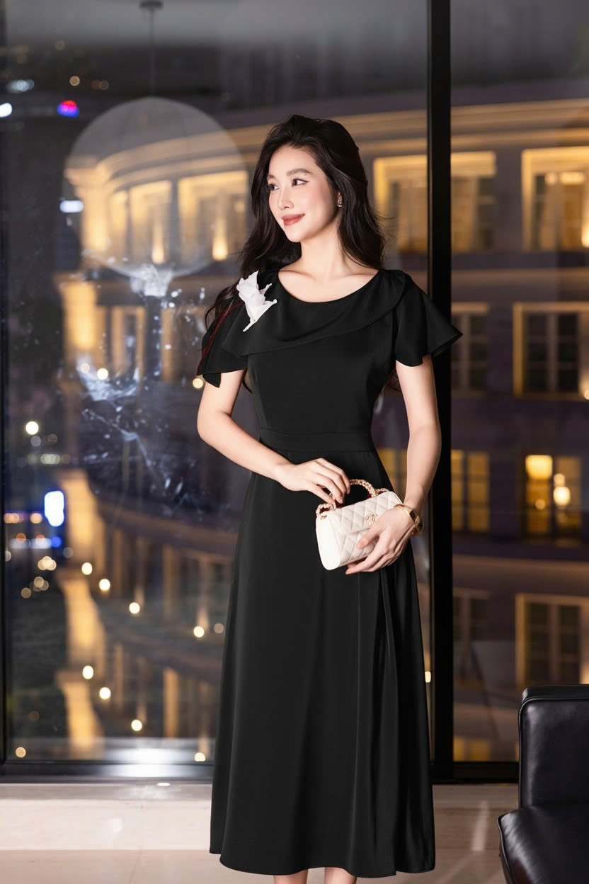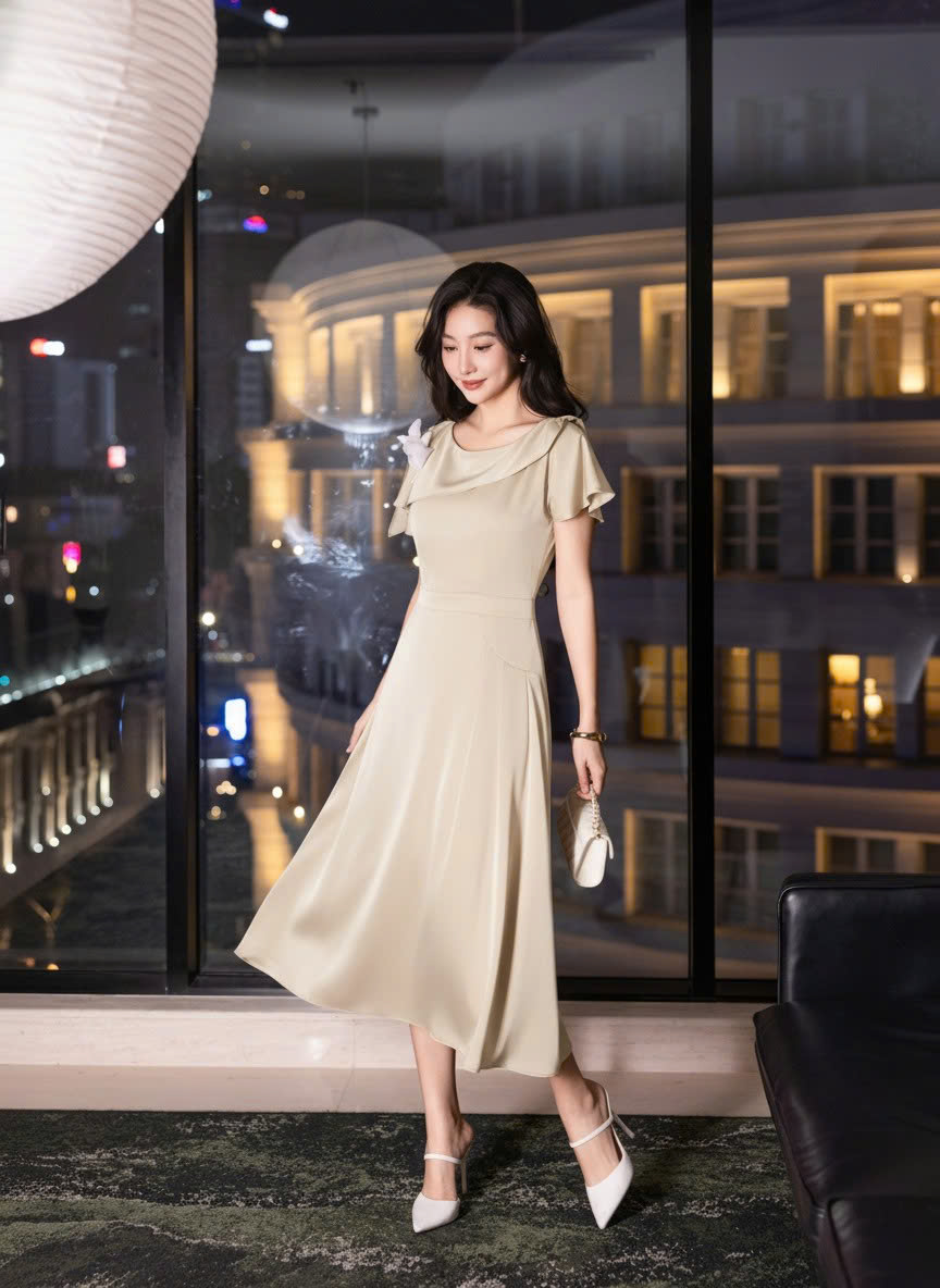 ĐẦM LỤA DÁNG XÒE CÀI HOA