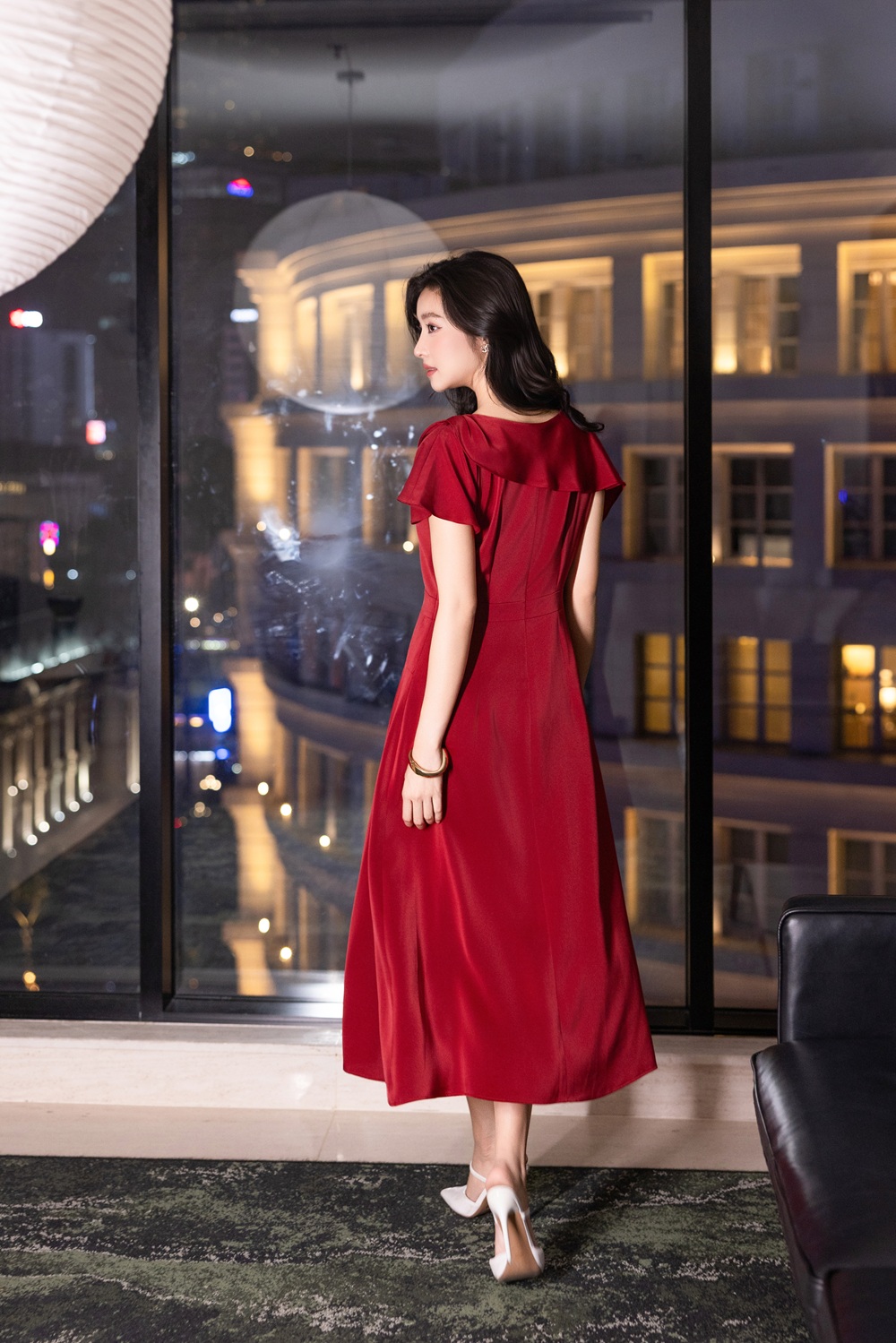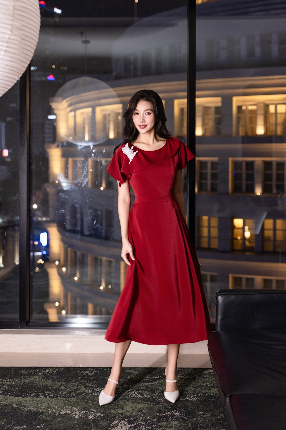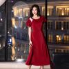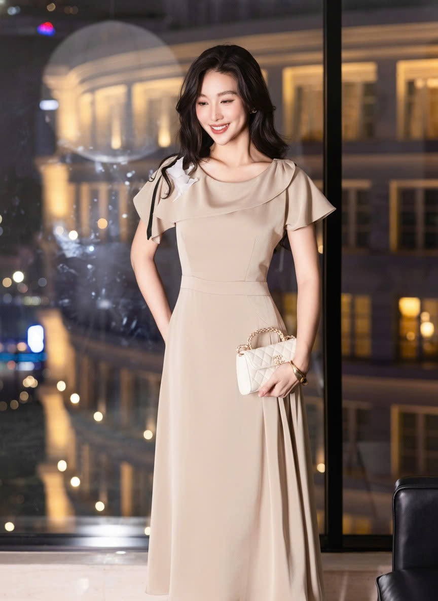 ĐẦM LỤA DÁNG XÒE CÀI HOA