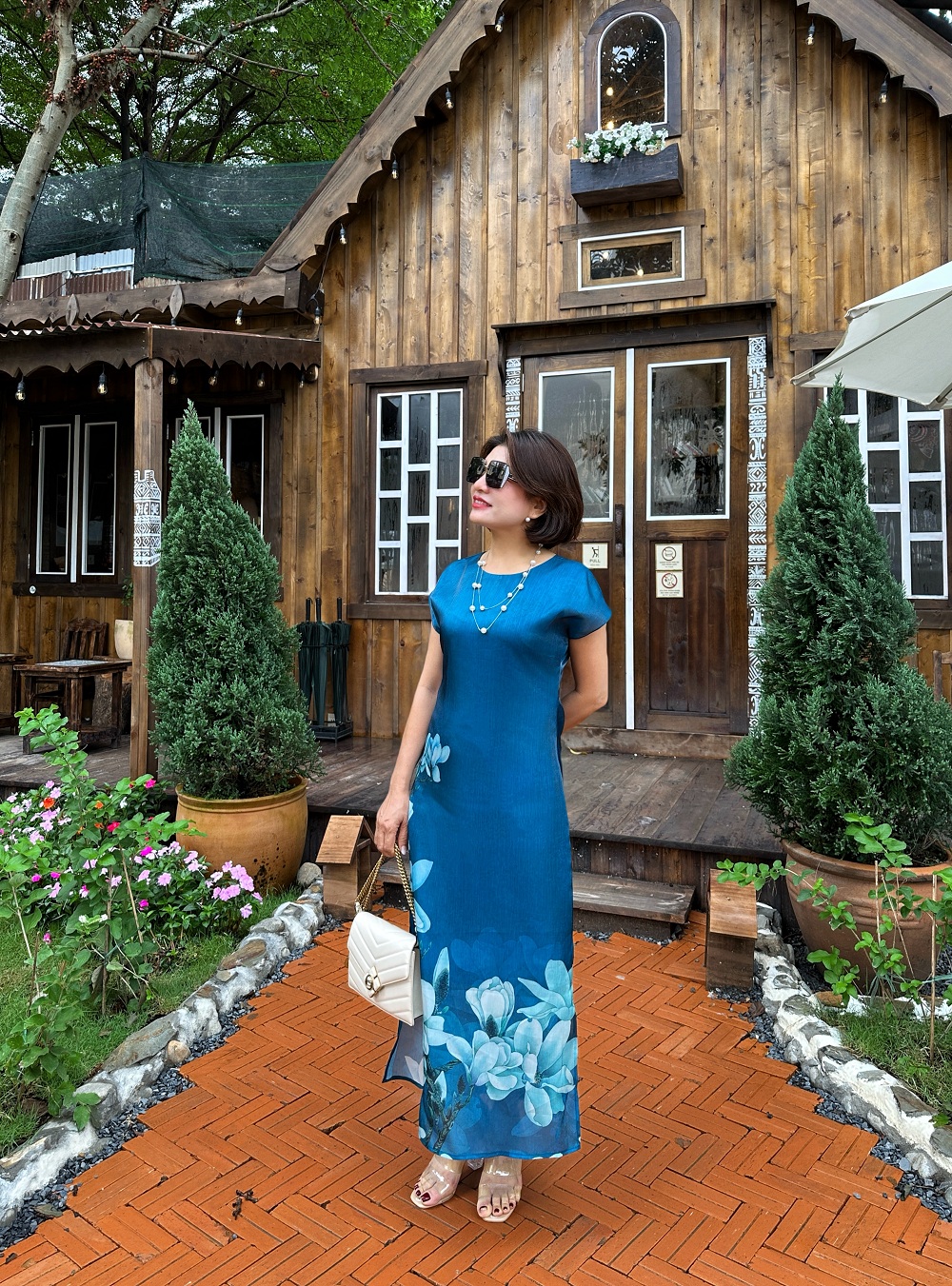 Thanh lịch và tinh tế, chiếc đầm lụa organza họa tiết hoa lớn mang đến vẻ đẹp sang trọng, nhẹ nhàng nhưng đầy cuốn hút cho những quý cô hiện đại. Thiết kế đơn giản mà nổi bật, phù hợp cho những buổi dạo phố, cafe hoặc gặp gỡ bạn bè.