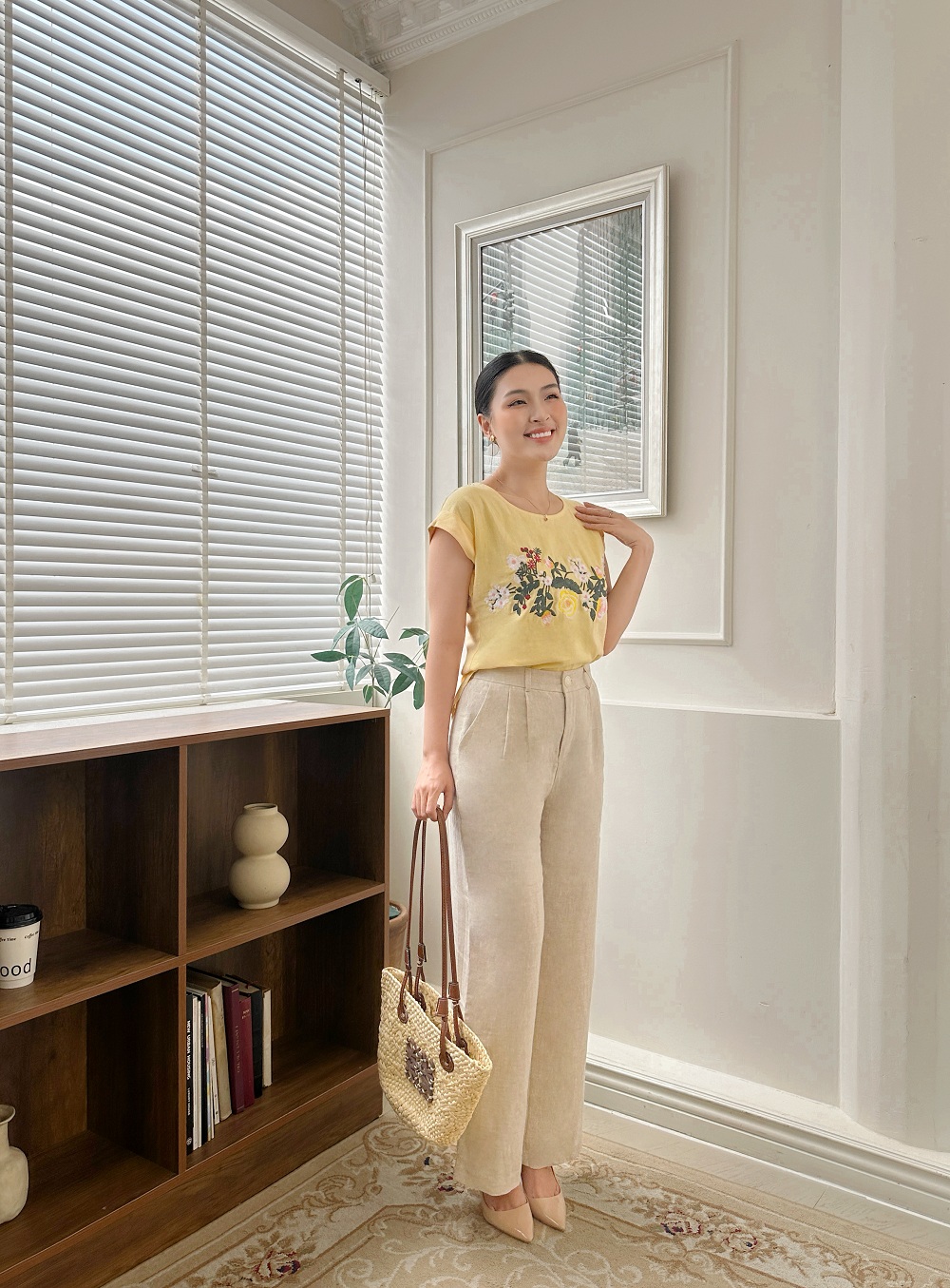 Quần Linen Ống Rộng Thanh Lịch, một món đồ không thể thiếu trong tủ đồ mùa hè. Quần lưng chun thoáng mát, nhẹ nhàng trong từng bước chân, gam màu trung tính dễ dàng kết hợp.